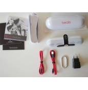 Подобаваща на хай-енд характера на устройството е и неговата опаковка, която би трябвало да е позната на ползващите слушалките на компанията. Голямата бяла кутия с магнитна ключалка оставя усещането за премиум продукт, а в нея се намират куп аксесоари. Освен задължителното ръководство за употреба в нея открихме два кабела в червен цвят и с атрактивен дизайн - не сме предполагали, че ще напишем нещо подобно за кабели, но е истина. Единият е с USB и microUSB конектори и служи за зареждане на Beats Pill чрез компютър или през включения в комплекта адаптер за ел.мрежа. Другият е с два 3,5 мм аудиожака и е предназначен за връзка на джаджата с устройства без Bluetooth възможности или пък в случаите, в които не искате да ползвате безжична връзка, за да пестите енергия. Кабелът служи и за връзка с аудиосистеми чрез аудиоизхода на високоговорителите. Така можете да ги използвате, за да прехвърлите звука от мобилното устройство или компютър към усилвател или система, които иначе нямат Bluetooth възможности.Beats Pill прилича на уголемена капсула от лекарство, но все пак остава достатъчно компактен, за да е лесно мобилен. Цилиндричната форма се предлага в различни цветове (бял, черен и червен, но в сайта на компанията видяхме и други цветови варианти) и може да бъде обхваната лесно в ръка. За предпазване от нараняване при транспортиране в комплекта влиза твърд калъф с цип, който може и да бъде закачен за чанта или раница чрез добавения алуминиев карабинер. Долната част е покрита с гума за по-стабилно прикрепяне върху повърхността, на която го оставяте, а освен това тя служи и за обиране на вибрациите при възпроизвеждане на музика.