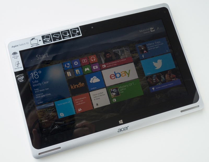 Едно от тях ще бъде и Aspire Switch 10 на Acer, с което компанията постави началото на нова серия от достъпни хибридни лаптопи. Джаджата следва познатата формула, комбинираща таблет с клавиатура, но го прави по интересен начин и при доста атрактивна цена, което ще я направи предпочитан избор за мнозина в задаващия се сезон на предпразнично пазаруване. Тествахме първото издание (SW5-011) с 10,1” дисплей с резолюция 1366 х 768 пиксела и 32GB SSD памет, но междувременно на пазара се появиха и версии с 10,1” и 11,6” full HD панел и 500GB допълнителен твърд диск, скрит в клавиатурата. На пазара може да се намери и оригиналното издание, също с 500GB диск е клавиатурата. Има и вариант с екранна резолюция 1280 x 800 пиксела, така че компанията определено е осигурила избор на потребителите.