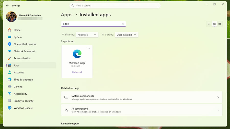 1. Деинсталиране на Microsoft Edge