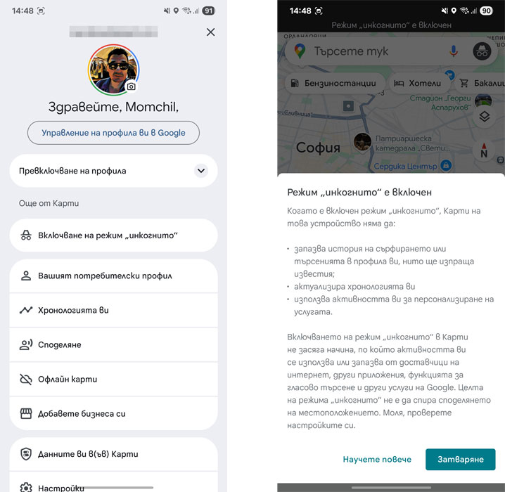 Може да предпочитате активностите ви в Google Maps да останат частни, особено когато искате да предпазите телефона си с Android от любопитни погледи. Режимът инкогнито ви позволява да сърфирате, без да запазвате историята на търсенията си или да актуализирате вашата хронология в Maps. Когато е активиран този режим, персонализираните резултати не са достъпни, но дейността ви остава незаписана. Ето как да го използвате:
