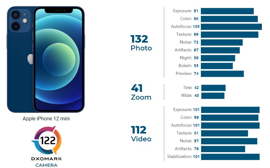 DXOMARK публикува ревюто си на основната камера на Apple iPhone 12 mini, като това е последният модел от серията, който получава оценка от експертите. Телефонът се нарежда на 14-о място в класацията на организацията с еднакъв резултат с iPhone 12. Това е очаквано, тъй като те имат еднакви камери.