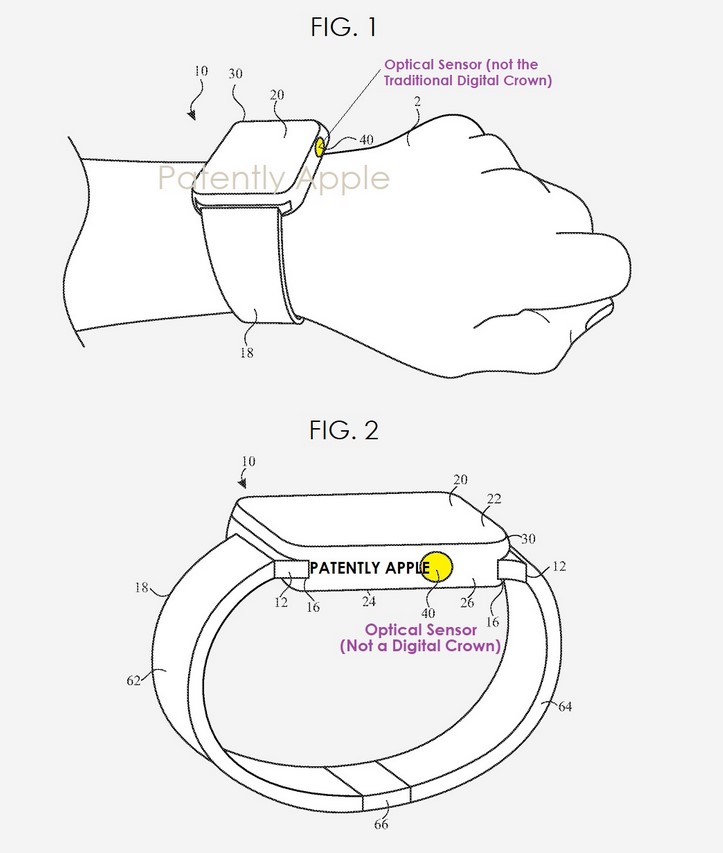 За това загатва патент на Apple, подаден към USPTO, отрит от Patently Apple. Заявката е под името „часовник с оптичен сензор за потребителско въвеждане“ и показва как новите сензори могат да бъдат използвани за тези цели.