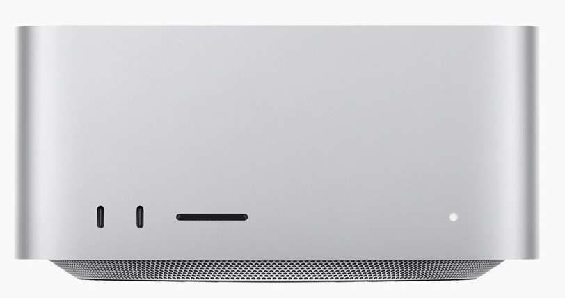 И тъй като става дума за работна машина са добавени множество възможности за връзка. Отзад има 4 х Thunderbolt 4 порта, 10Gb Ethernet, 2 х USB-A, HDMI и аудио жак за слушалки с висок импеданс или активни говорители. Компютърът е снабден с Wi-Fi 6 и Bluetooth 5.0. Отпред са поставени 2 х USB-C порта (10Gb/s USB 3.0 с M1 Max и 40Gb/s Thunderbolt 4 с M1 Ultra) и четец за SD карти.