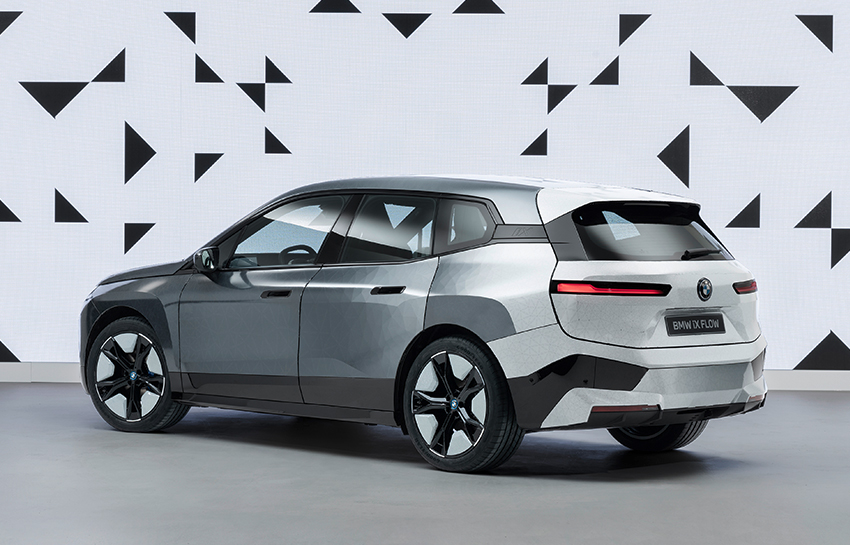 Германската компания показа концептуална версия на BMW iX на име BMW iX Flow, чиято повърхност е покрита с милиони капсули с диаметър колкото дебелината на косъм. Всяка от тези капсули съдържа отрицателно зареден бял пигмент и положително зареден черен. Според подаденото електрическо пигментите отиват до повърхността на капсулата и така се променя оцветяването на автомобила.