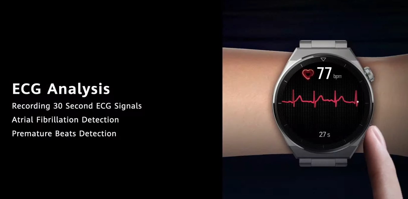Сертфицирана като медицинско устройство от National Medical Products Administration на Китай, ЕКГ системата на Huawei включва високопроизводителен ЕКГ сензорен модул и предоставя ЕКГ измерване в реално време с информация за синусовия ритъм, предсърдно мъждене (фибрилации) и много други. Освен това часовниците ще поддържат измерване на артериалната твърдост за оценка на риска от сърдечносъдови заболявания.