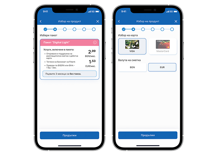 За да се регистрирате в My Fibank, е необходимо просто да последвате няколко лесни стъпки. Има и възможност за активиране на банков пакет Digital Light на цена 2,99 лв. / 1.53 евро месечно, но като бонус през първите 3 месеца е безплатен. С него можете да получите своя разплащателна сметка в евро, като откриването и воденето са без такси.
