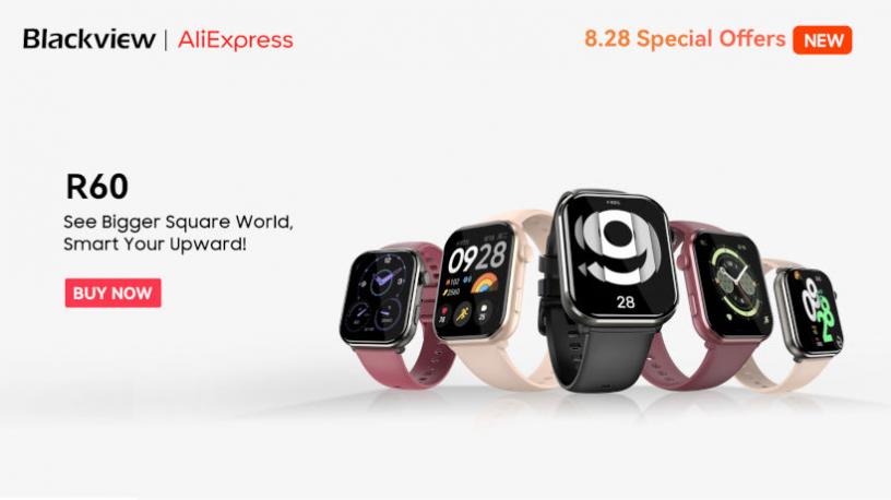 Последната оферта е на часовника Blackview R60. Той е с квадратна форма, има голям 1.96" AMOLED дисплей с яркост от 800 нита. Рамката е алуминиева, а дисплеят отпред е защитен от Panda Glass и корпусът е водоустойчив по IP68.