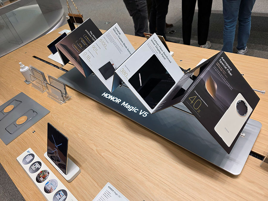 Не бяха пропуснати и сгъваемите смартфони, включително и тънкия Magic V5 с неговата батерия с изключително тънки елементи. Наред с всички продукти на Honor бяха изложени и продукти на други компании, които са част от разширената екосистема. Специално място беше отделено и на многобройните награди, които Honor е получила на различни изложения.