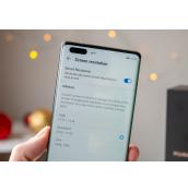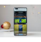Следва актуалният флагман на Huawei Mate 40 Pro, а той има 6.76" OLED дисплей с извити на 88 градуса страни и резолюция 1344х2772 пиксела. Освен това панелът поддържа опресняване при 90Hz. В него е вграден оптичен сензор за отпечатъци.