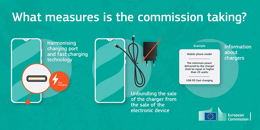Европейската комисия прави нов опит за налагане на един порт за зареждане на електронните устройства и този път това е USB-C. Комисията оправдава хармонизирането с желанието за намаляване на електронните отпадъци и удобството за потребителите. В съобщението се посочва, че след години на работа с индустрията през последното десетилетие зарядните за мобилни телефони са били редуцирани от 30 на 3. Сега предстои въвеждането на единен стандарт за зареждане за всички подходящи устройства.