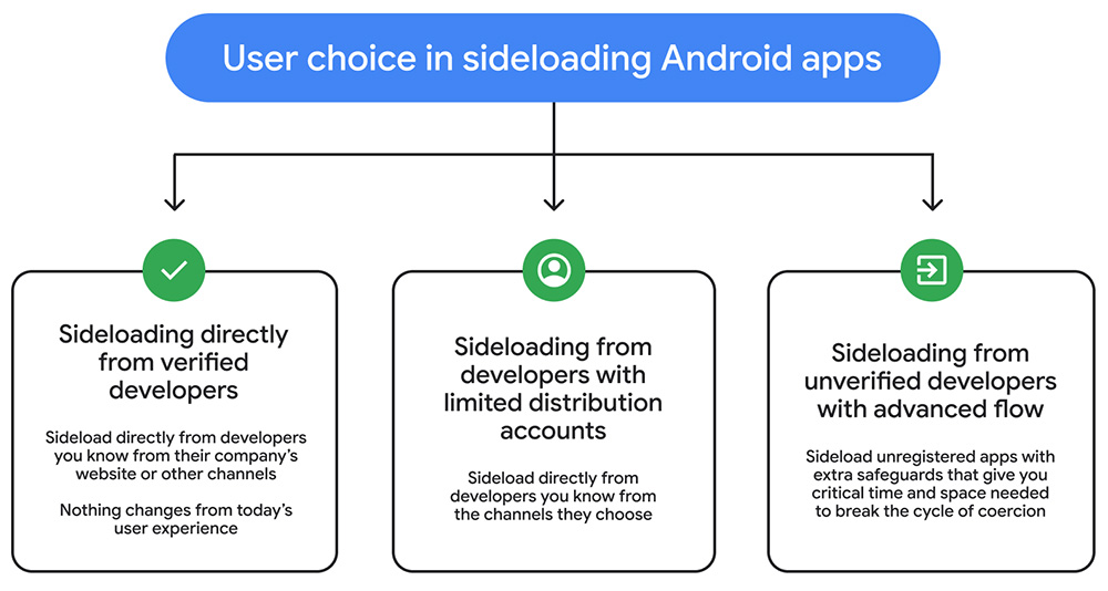 Според публикация в блога на Android Developers, компанията въвежда задължителна верификация за всички разработчици, които искат техните приложения да бъдат лесно инсталирани на сертифицирани устройства с Android. Ако даден създател на софтуер не премине през процеса на проверка (който включва предоставяне на документ за самоличност и такса), неговите приложения ще бъдат блокирани по подразбиране.