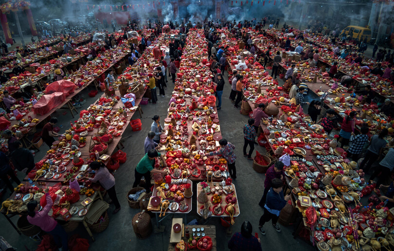 Описание от автора: "Тази снимка е направена в Лонгян. Според уникалната традиция Хака, за която се вярва, че носи голямо богатство, всяко семейство в кадъра предоставя угощение за гостите. Снимката говори за любовта и надеждата в сърцата на хората.“