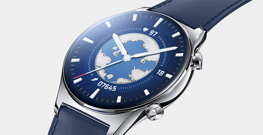 Honor Watch GS 3 е с диаметър 45.9 мм и предлага стоманен корпус с дебелина 10.5 мм и тегло 44 грама. Отпред под 3D стъкло е поставен 1.43” AMOLED дисплей с резолюция 466 x 466 пиксела и пикова яркост 1000 нита. Батерията осигурява до 14 дни живот на батерията при типична употреба и до 30 часа с включено GPS проследяване. На разположение са още 4GB памет за файлове, възможност за инсталиране на приложения и разширени възможности за отчитане на спорт. Повече за него има тук.
