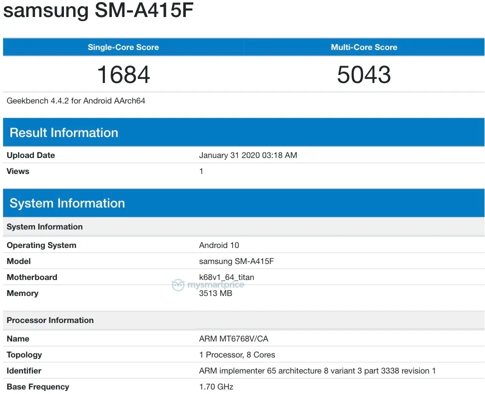 Един от множеството модели, които Samsung подготвя в серията Galaxy A през настоящата година, е Galaxy A41, като единственият детайл около него, за който знаехме досега, е наличието на поне 64GB памет за файлове. Сега устройството се появи и в базата данни на сайта Geekbench, а от там научаваме и някои други ключови характеристики за него.