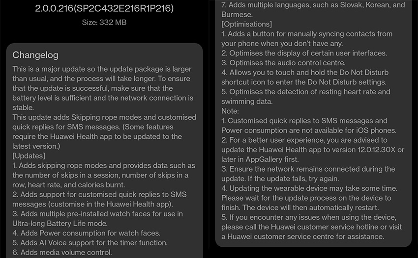Часовниците от серията Huawei Watch 3 получават нов основен ъпдейт, който добавя множество нови функции. Обновяването е с номер 2.0.0.216 и е с размер 332МB, така че се пригответе за по-дългото му инсталиране. Сред добавките са режим за отчитане скачане на въже като осигурява данни като брой подскоци в сесията, изгорени калории и пулс.