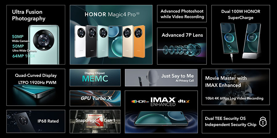 В самото начало на мобилния конгрес в Барселона китайската технологична компания Honor, която от известно време работи напълно самостоятелно от Huawei, обяви своята нова серия флагмански смартфони, на които ще разчита през тази година. Както вече знаем серията се казва Magic4, а сега разбрахме, че в нея влизат моделите Magic4 и Magic4 Pro. Заедно с тях компанията обяви още слушалките Earbuds 3 Pro и умния часовник Watch GS 3.
