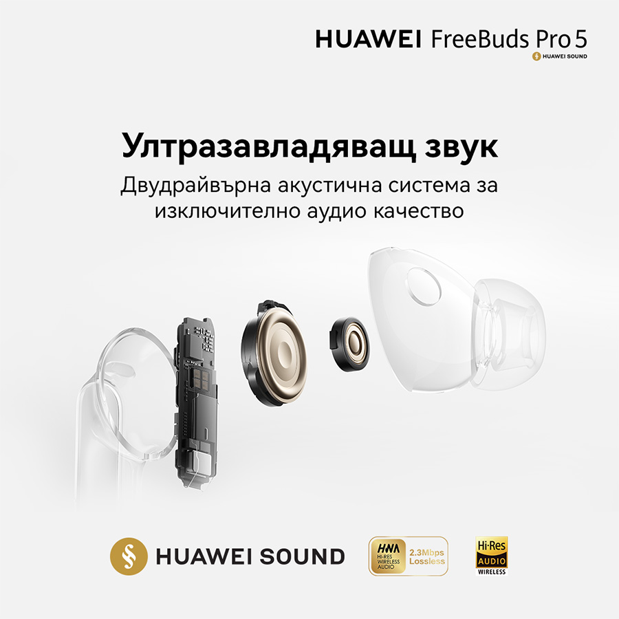 Huawei FreeBuds Pro 5 са вече в България с революционна двуядрена технология за шумопотискане
