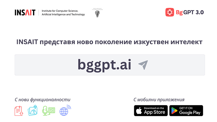 INSAIT представи третото поколение на BgGPT 3.0 и нови мобилни приложения