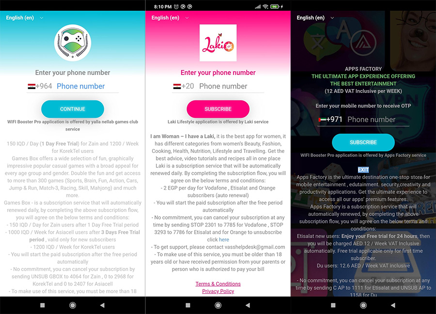 Като цяло измамните приложения са били инсталирани от 105 милиона потребители в 70 страни, като след това са ги абонирали за премиум услуги на цена 15 долара месечно чрез директен операторски билинг (Direct Carrier Billing или DCB). Това е платежна услуга, която позволява на потребителите да заплащат за съдържание от Play Store чрез добавяне на сумата към тяхната сметка за мобилни услуги.