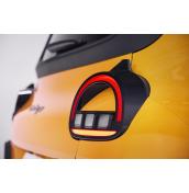 Снимките потвърждават това, което вече знаем от прототипите и тийзър изображенията, споделени от Renault, а именно, че новият Twingo изглежда почти идентичен с концептуалната разработка, която видяхме преди две години. Дизайнът е модерна интерпретация и почит към оригиналния Twingo с „жабешки очи” от 90-те години, като новите LED светлини във формата на подкова придават на колата щастливо изражение.