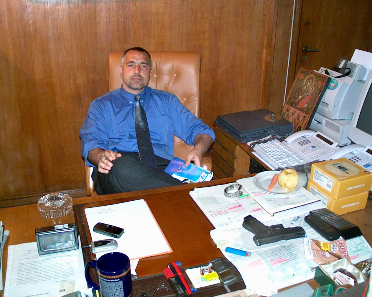 На последната снимка се вижда бюрото му от 2002 година по времето, когато беше главен секретар на МВР. На него има Motorola V60, две кутии от същия модел, друг телефон с антена (вероятно Samsung) и още един черен телефон, който най-вероятно е Nokia 8890 или 8855.