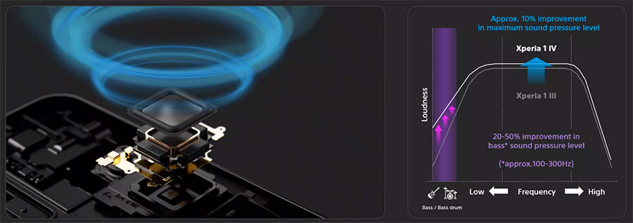 Смартфонът отново има стерео високоговорители, но сега те включват подобрения, които увеличават с около 10% максималната сила на звука и с 20-50% силата на ниските честоти (100-300Hz), така че басите би трябвало да звучат много по-добре. Устройството продължава да предлага жак за слушалки, а Sony се фокусира и върху качеството на възпроизвеждането.