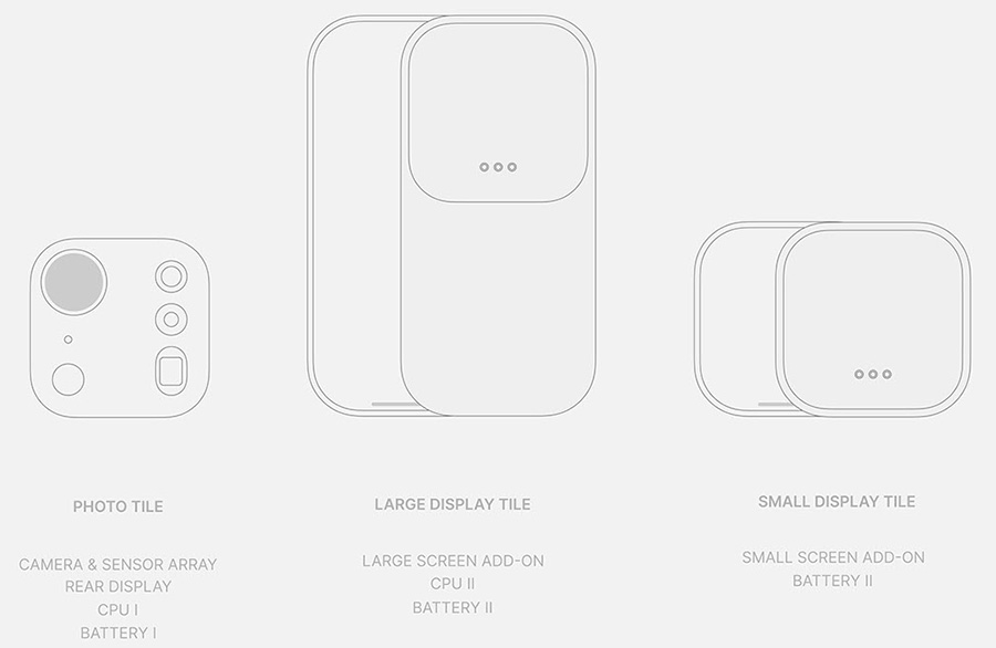 Секцията на камерата е снабдена с малък дисплей за показване на нотификации, връзки към приложения и уиджети, а освен това служи като фенерче. Дизайнерът е създал и модул, който добавя по-голям дисплей, така че да се получи преживяване като от нормален смартфон, но в по-компактна форма.