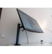 Поставката позволява да променяте височината на монитора в рамките на 130 мм, да го въртите наляво или надясно (± 280°), да го завъртите на 90° във вертикална ориентация, да го наклоните нагоре или надолу (± 25°) и да го издърпате напред или бутнете назад (0~180 мм).