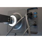 Компанията е добавила и шайба, която заменя скобата, и позволява монтирането върху бюра с отвор. В комплекта има дори стикер, който да залепите върху гърба на скобата, за да прикриете винтовете.