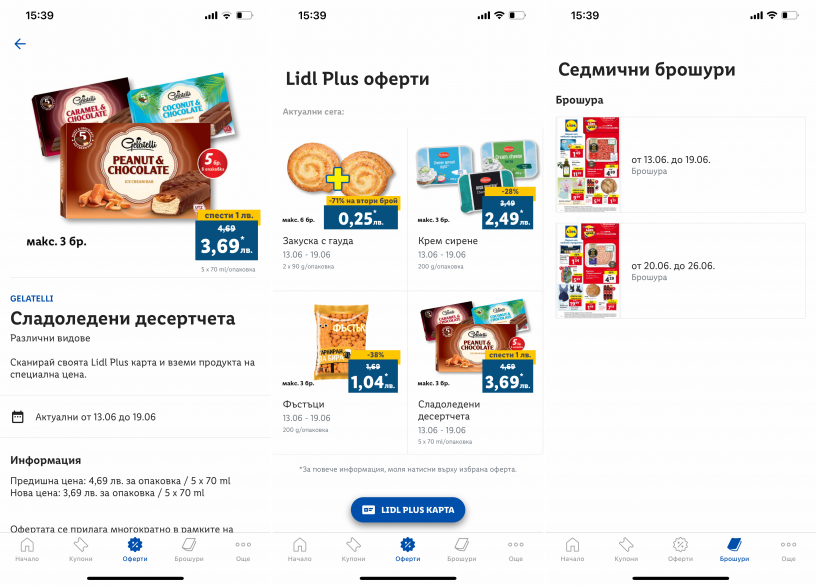 Секцията оферти не е обвързана с приложението, а просто дава информация за отстъпки, които са валидни в магазините. Обикновено те са за конкретни продукти в определени количества при всяка покупка. В комбинация с брошурите, в които има информация за всички оферти за седмицата, това са чудесни начини да планирате покупките си и да оптимизирате бюджета си. На базата на тях можете да си направите списък от покупки, с който да сте готови за пазаруване.