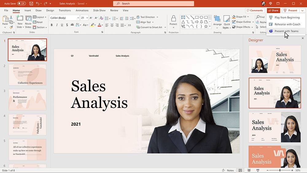 За улесняване на отдалечените презентации в началото на 2022 PowerPoint ще се сдобие с опцията Cameo, която интегрира видеото от камерата в Teams в презентацията с опции за персонализиране на изгледа. Презентиращите ще могат да се възползват и от ползващата ИИ функция speaker coach, която им дава съвети за по-добри презентации - например за скоростта на говорене, дали не прекъсват някой друг и напомняне да погледнат към аудиторията. Тази опция ще е достъпна в Teams в началото на 2022.