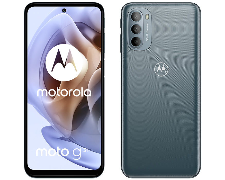 И за финал стигаме до moto g31, който ще се предлага за 200 евро в синьо и сиво. Устройството осигурява 6.4" FHD+ OLED дисплей и отново разчита на чипсет Helio G85. Оперативната памет е 4GB, а за файлове има 64/128GB с опция за разширяване.