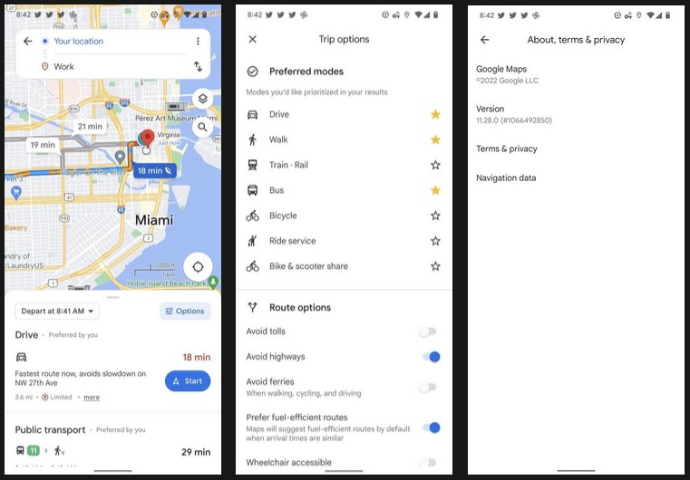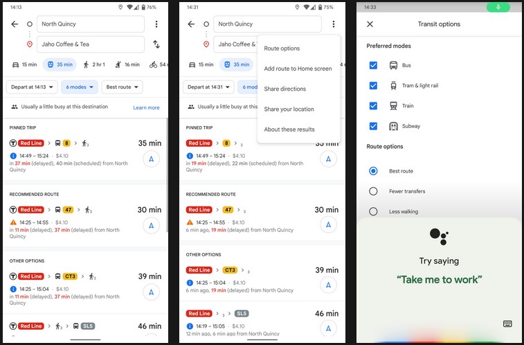 Най-интересната добавка обаче е на менюто с опции за пътуване. Има панел с предпочитания, в които потребителите дават приоритет на различните типове придвижване, шофиране, ходене, каране на колело и т.н. Подобен панел е скрит и в настройките на Google Assistant.