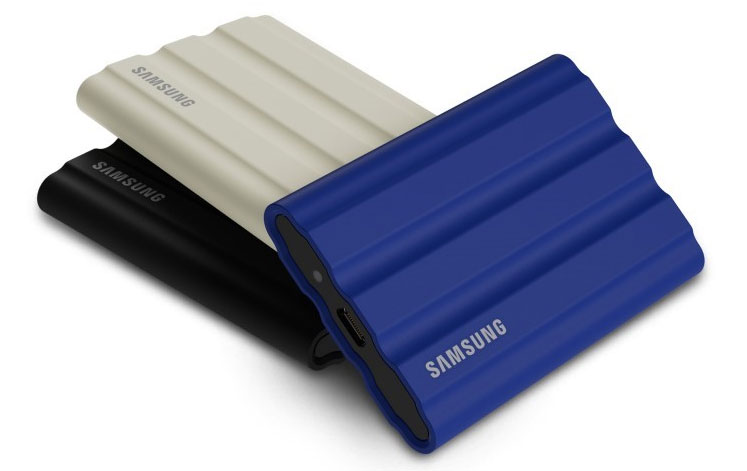 Samsung представи нов портативен SSD, който е насочен към търсещите физически по-здрав носител на данни. Устройството се казва T7 Shield и на практика е вариант на познатия модел T7, но в гумиран корпус, който е със сертификат IP65 за водо- и прахоустойчивост и може да издържи на падане от височина до 3 метра. Въпреки всичко това устройството запазва компактните си размери, а теглото е едва 98 грама.