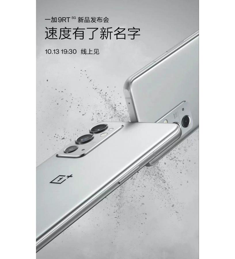 Следващият достъпен флагман на OnePlus ще бъде OnePlus 9 RT, който ще излезе официално в Китай на 13 октомври. Това обяви компанията в свой пост в официалната си страница в Weibo.