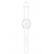 Другата версия може да е от кожа, а тук системата за закопчаване е доста необичайна, тъй като има допълнителна пластина. Корпусът на часовника е с два хардуерни бутона отдясно на екрана и секция със сензори и пинове за зареждане в долната си част.