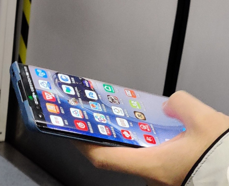 В първата снимка виждаме предната част на модела и наличието на отвор в екрана за двойна селфи камера. Видима е извивка на дисплея от едната му страна, но защитният калъф закрива горната и долната рамки. Предполага се, че устройството ще включва четиристранно извит екран. Зоната до отвора за предната камера е в черно, като там се визуализират известията.