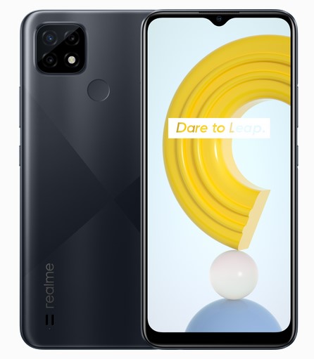 Следва realme C21 с IPS екран с диагонал 6.5 инча, резолюция HD+ и капковиден прорез, в който е поместена 5MP селфи камера. Телефонът е базиран на чипсет Helio G35 в комбинация с 4GB RAM и 64GB памет за файлове с възможност за добавяне на памет карта. Батерията е с капацитет 5000 mAh.