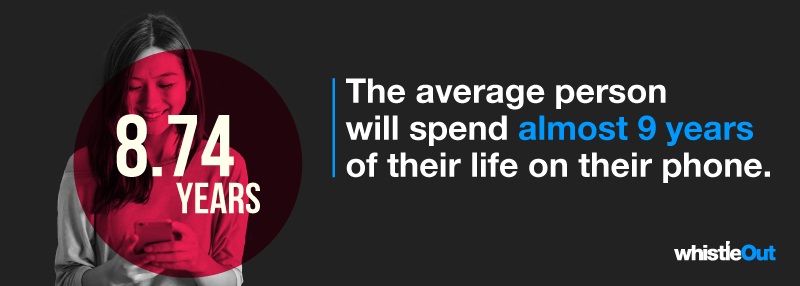Много от нас използват активно смартфоните си, а сега интересно проучване дава детайли и за това какво време ни отнемат тези устройства. Данни от изследване на WhistleOut показват, че американците изкарват средно по близо девет години от живота си в работа с телефон.