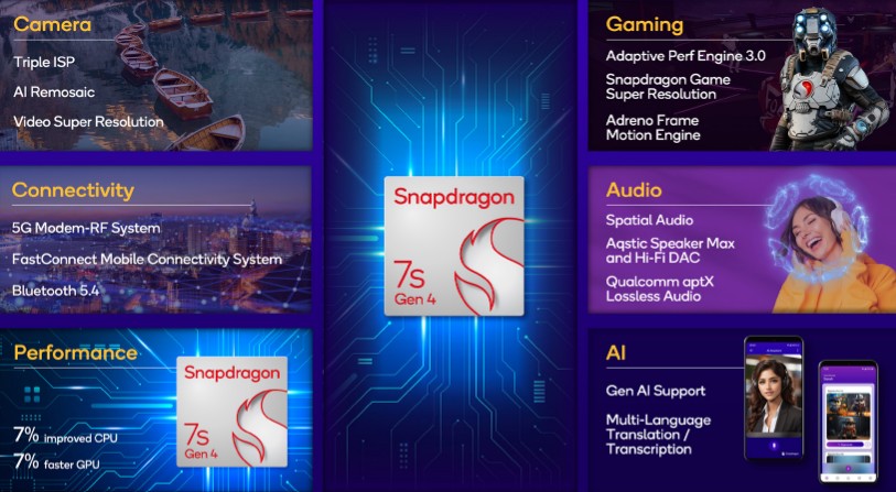Qualcomm има нов чип за смартфони в средния клас и това е Snapdragon 7s Gen 4 (SM7750-AB). Този чип е пряк наследник на миналогодишния Gen 3 и включва почти идентичен централен процесор.