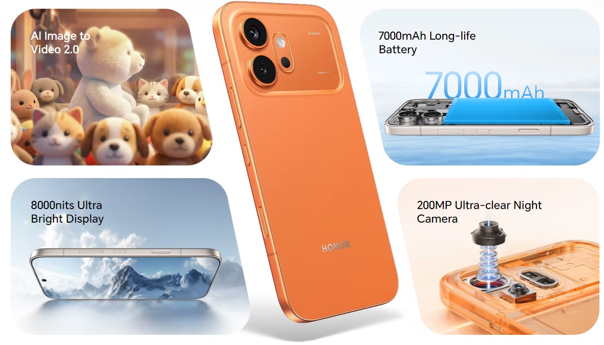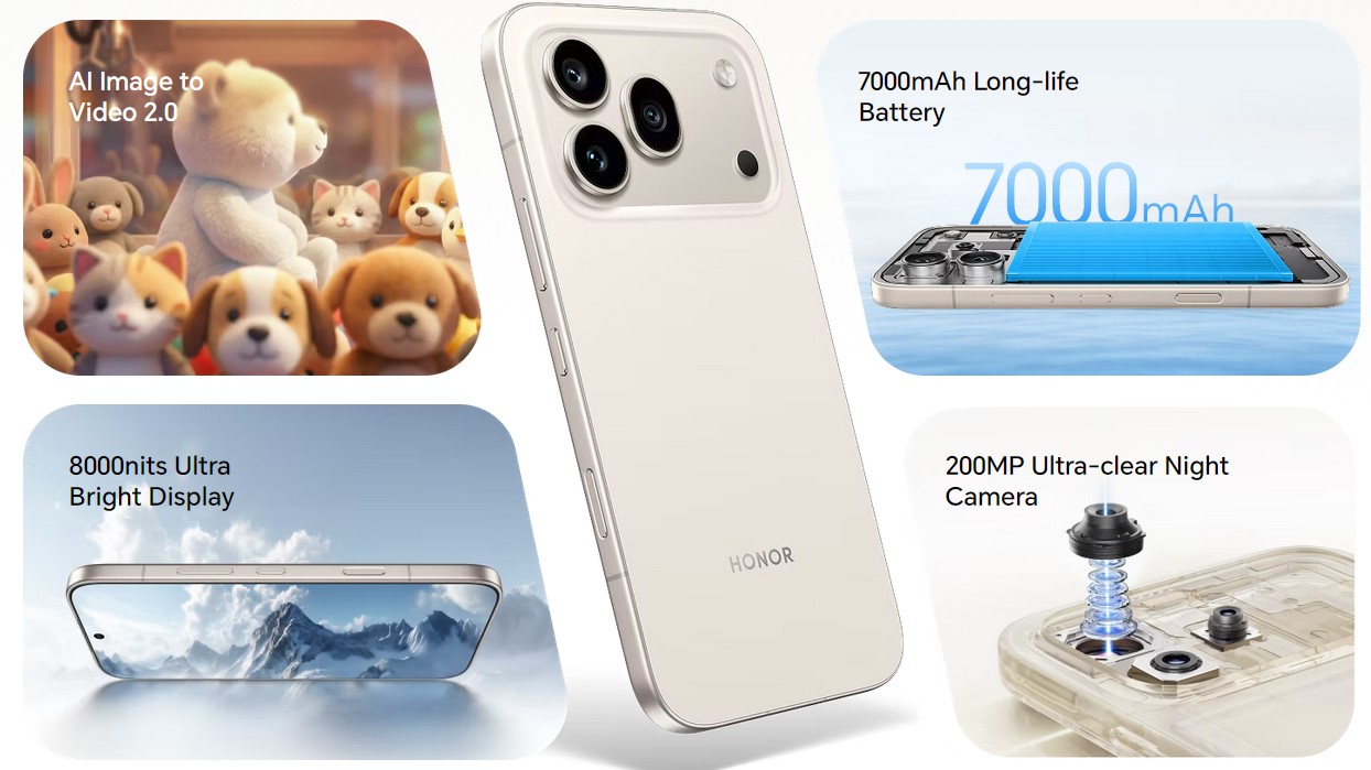И двата телефона ще се доставят с MagicOS 10, базиран на Android 16, и ще включват функцията AI to Video 2.0 на Honor, както и пълния пакет Honor AI. Двата телефона ще разполагат със силициево-въглеродни батерии с капацитет 7000 mAh с бързо жично зареждане при 80 W и безжично при 50 W. Има и възможност за обратно кабелно зареждане при 27 W.