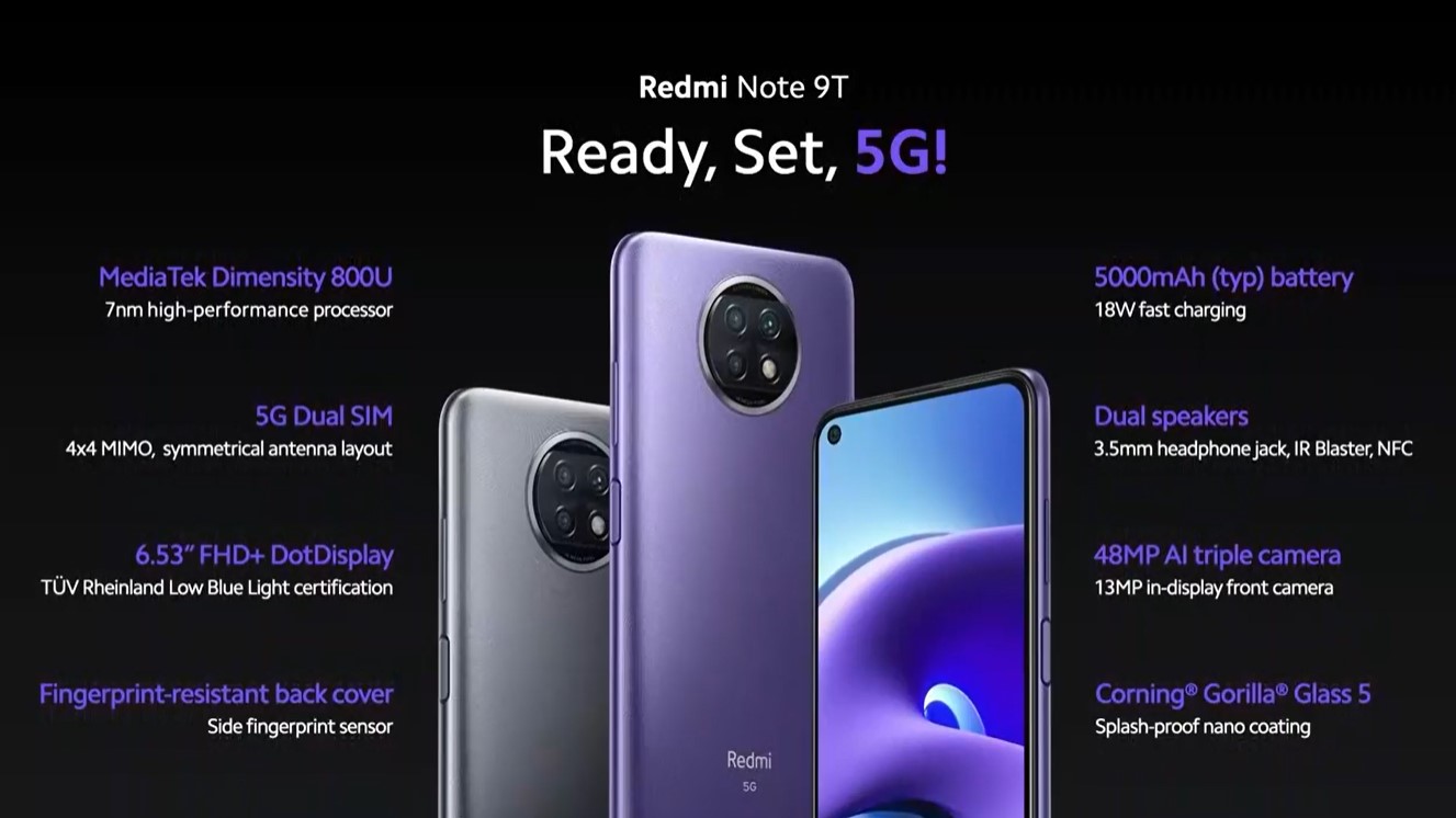 Днес Xiaomi представи най-новото си смартфон попълнение, което е част от серията Redmi Note 9, а именно Redmi Note 9T. Новият модел има 6.53-инчов екран с резолюция Full HD+ и отвор, в който е поместена 13MP селфи камера. Налично е защитно покритие Gorolla Glass 5 и има режим за ограничаване на синята светлина.