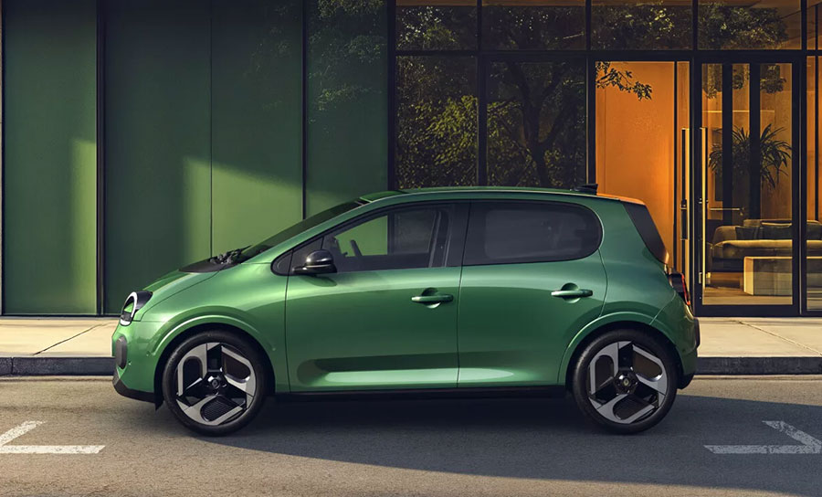 Новият Twingo E-Tech electric е с дължина 3789 милиметра, ширина 1720 мм и височина 1491 мм, с щедро междуосие от 2493 мм. Теглото е едва 1200 кг. Някои може да спорят, че 18-инчовите джанти са прекалено големи за такъв малък хечбек, но за тях Renault предлага и стандартен комплект 16-инчови джанти.