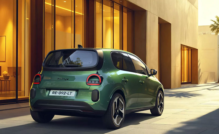 Новото издание на Twingo ще се продава изключително като електромобил, а разработката му е отнела само две години. От кръглите фарове и хоризонталната решетка на радиатора до тройните отвори на капака и червения бутон за аварийните светлини, става ясно, че Renault се е вдъхновил от оригиналния Twingo.