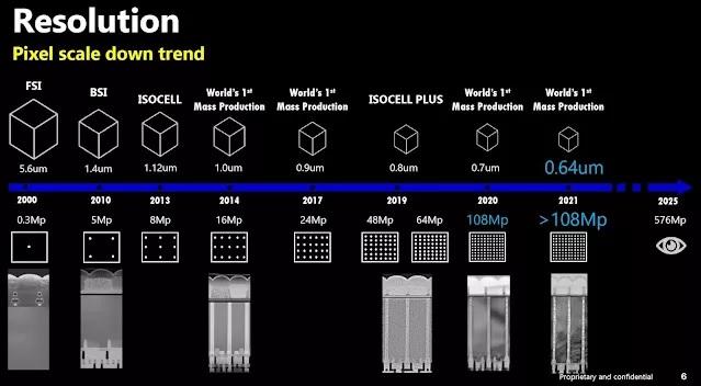 Наскоро Samsung представи първия в света 200-мегапикселов сензор за смартфони, но компанията не възнамерява да спре тук. Благодарение на слайд от презентация показана по време на SEMI Europe Summit научаваме, че корейците планират да въведат и 576MP сензор през 2025.