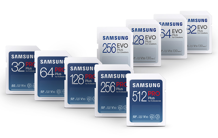Samsung предлага и SD карти PRO Plus и EVO Plus, които са насочени към нуждите на фотографите, професионалистите и създателите на съдържание. Картите са съвместими с фотоапарати, видеокамери и компютри и са подходящи за съхраняването на снимки и видео. И двете серии са повишена здравина и поддържат скорости от клас V30, което ги прави подходящи за запис на 4K UHD и FHD видео и плавното му възпроизвеждане при редактиране. Картите се предлагат с капацитет от 32GB до 256GB, а за PRO Plus има и нова опция с 512GB.