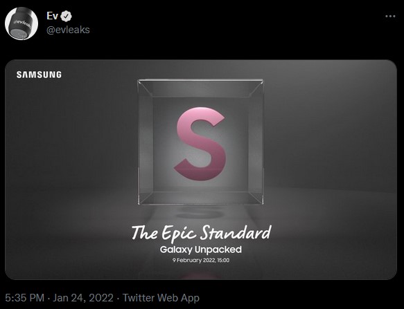 Лийкърът @evleaks сподели изображение, което изглежда като покана за премиерата Galaxy Unpacked, която е насрочена за 9 февруари. Това означава, че няма да се наложи да чакаме още дълго преди да научим всички детайли около новите устройства.