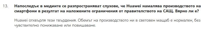 Въпреки това китайците не са били подготвени за решимостта на атаката от страна на САЩ, и то на толкова много фронтове. Той остава убеден в това, че компанията може да оцелее, и прогнозира, че тя ще отбележи ръст до няколко години. Междувременно Huawei се подготвя за спад в доставките на смартфони извън Китай с до 60%, а освен това кампанията срещу мрежовото й оборудване ще намали двугодишната й преднина при 5G спрямо Nokia и Ericsson.