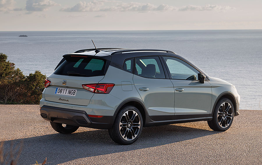 Субкомпактният модел е оборудван и със спортна предна броня, както и с препозиционирани фарове за мъгла. Други забележителни акценти са новите стандартни LED задни светлини, моделно име от тъмен алуминий, и преработени 16- и 18-инчови алуминиеви джанти. Клиентите ще открият три нови цвята, известни като Liminal, Oniric и Hypnotic. Arona има и два контрастиращи варианта за цвят на покрива: Midnight Black и новия Manhattan grey.