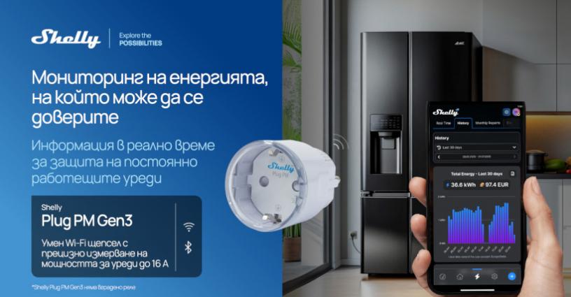 Plug PM Gen3 е новият смарт контакт на компанията, който предоставя подробни данни за енергийното потребление на включените уреди. Устройството работи с Wi-Fi и Bluetooth и може да бъде надградено, така че да функционира и като Wi-Fi удължител или BLE gateway.